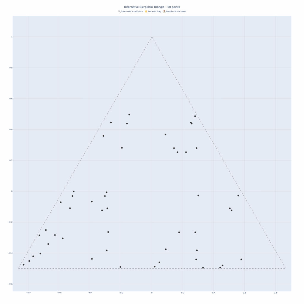 totally natural to want to see patterns quickly. When you’ve done 20 user interviews, your brain starts connecting dots; that’s human nature! But here’s what the Sierpiński triangle taught me: sometimes the real magic needs more data to reveal itself. Look at this: